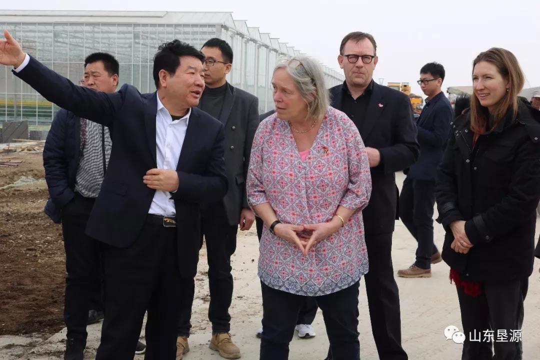 2019年3月9日上午,荷蘭王國南荷蘭省歐盟國際事務局副局長等一行6人在蘭陵縣副縣長劉志軍、江蘇綠港現代農業發展有限公司董事長李文虎的陪同下訪問考察山東墾源智慧農業產業園,山東墾源總經理郝世俊陪同考察。