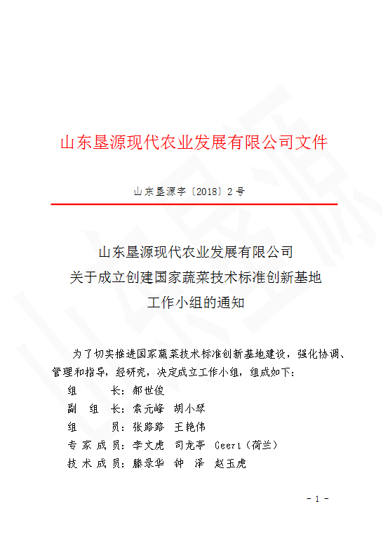 2018.12.1經總經辦商議,山東墾源設立標準化工作辦公室和成立相應標準化工作小組。